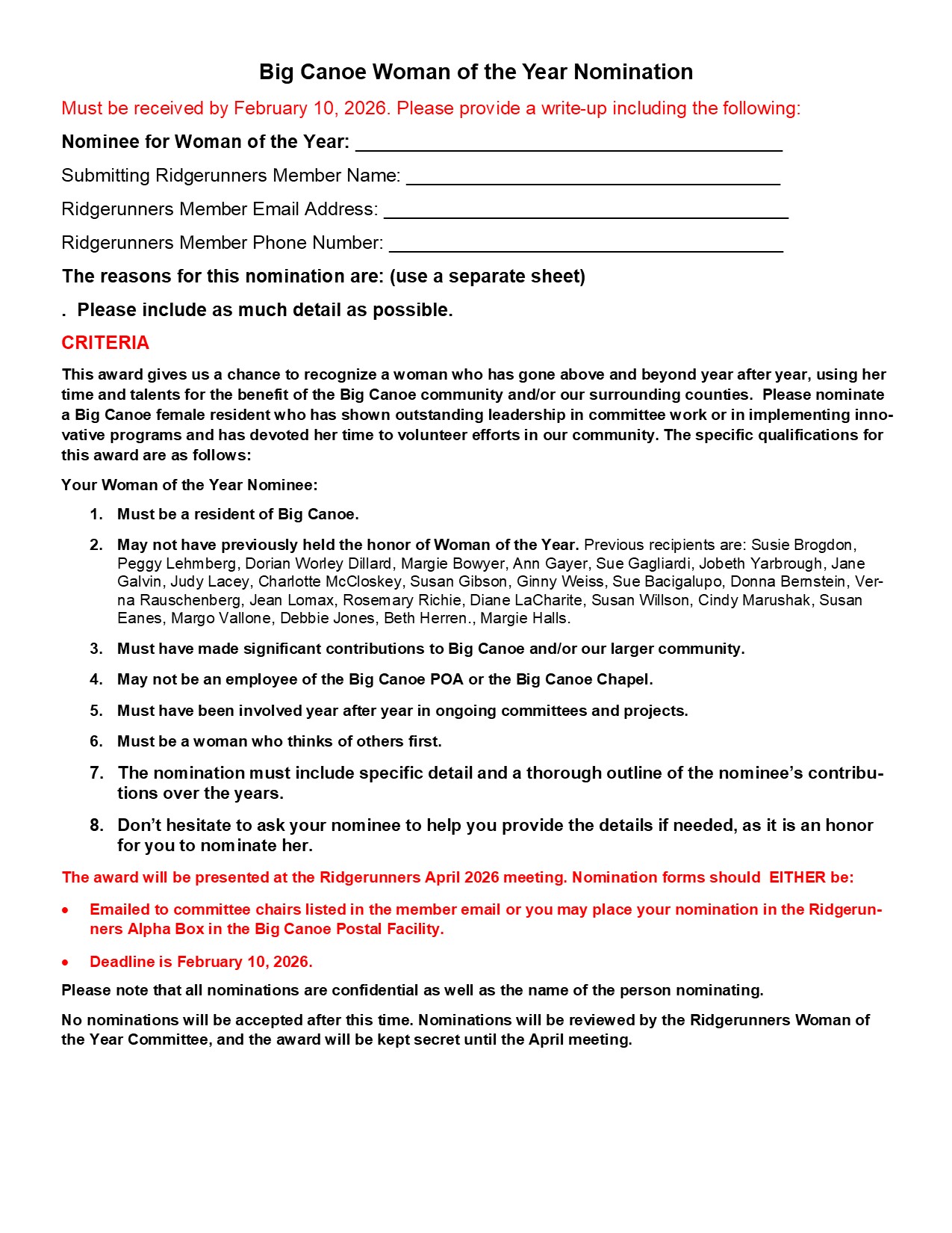 NOMINATIONS ARE BEING ACCEPTED NOW THROUGH FEBRUARY 10 FOR THE 2025-2026 WOMAN OF THE YEAR--Downloan the form below!